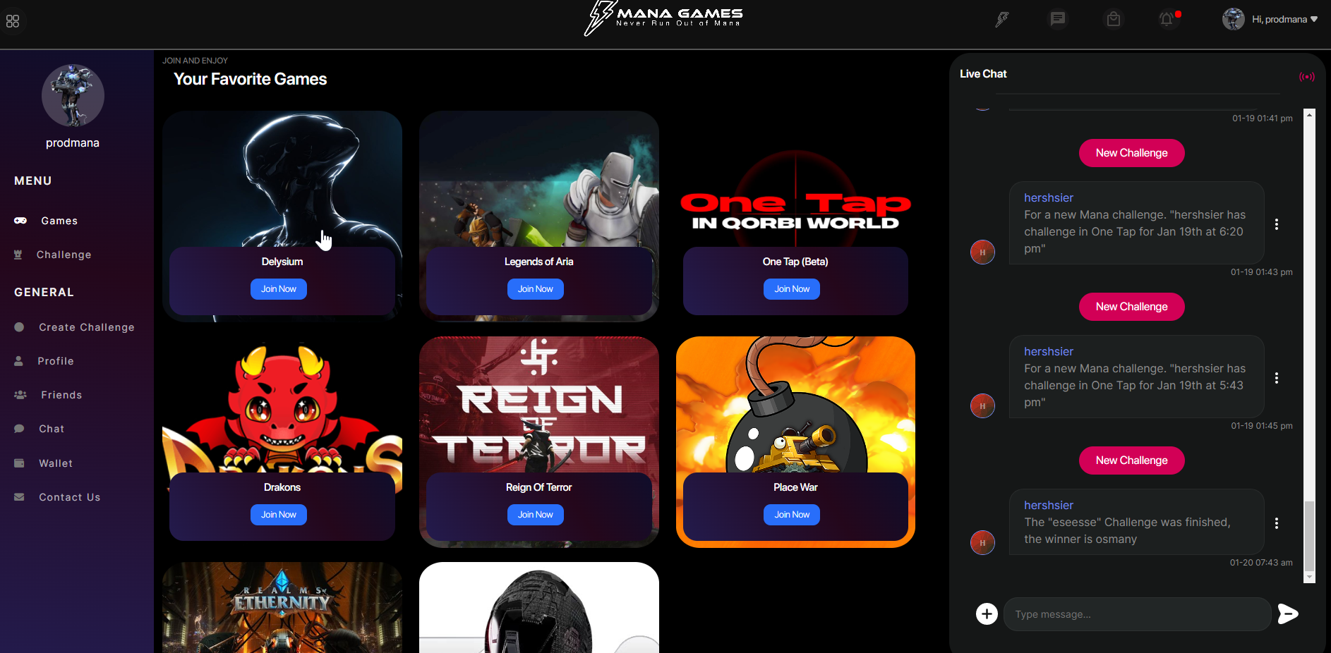 Through the MANA launcher, Game Studios can also include their in-game assets to be purchased with the MNG token that is earned with the p2p challenges.